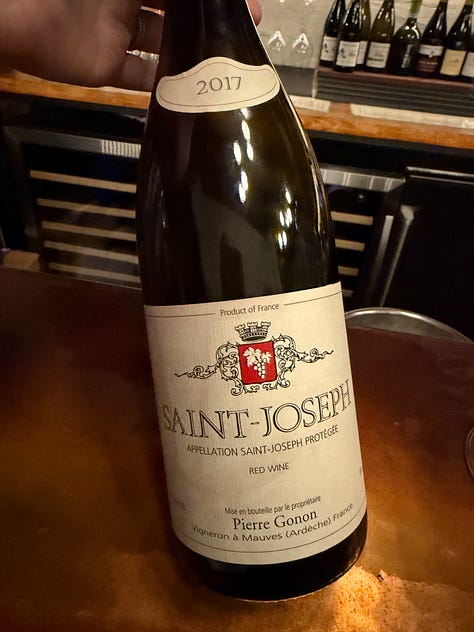 Gonon also poured a taste of the 2017 Pierre Gonon Saint-Joseph Rouge, which is in a fantastic place right now. Rich, dense fruit with all those delicious savory notes: violets, bay leaves and black olives, smoky peppery bacon, dark and juicy berries, all wound around firm tannins. Very classic, very syrah, very Gonon.
